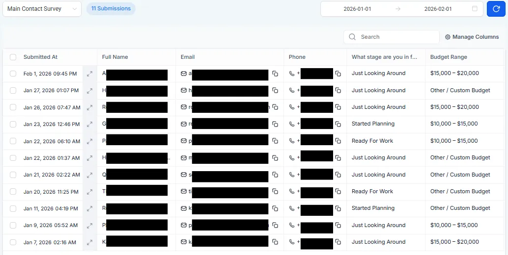 Proof that leads are turning into scheduled estimate requests, not just clicks.